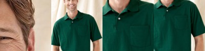 - 5-ounce, 53/47 cotton/poly pique with stay-cool wicking technology