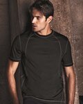 Stylish contrast stitching at the neck, arms and side panels defines this performance tee as a champ.