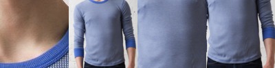 - Contrast color coverstitching at shoulders, armholes, cuffs and bottom hem