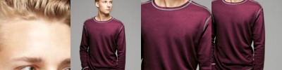 - Contrast color coverstitched neck, shoulders, armholes, and cuffs