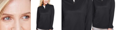 4.4 oz./yd²., 88/12 polyester/elastane Coolcore® fabric with color secure® technology that helps prevent dye migration Moisture-wicking performance UPF 50+ protection Four-way stretch fabric for increased mobility Set-in sleeves with rolled forward shoulder seam Tag-free label