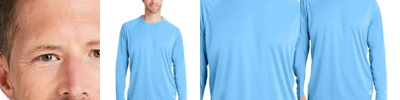 100% polyester interlock smooth Dry-Excel™ knit with color secure® technology that helps prevent dye migration Moisture-wicking performance UPF 45+ protection Odor-resistant properties Crew neck Tagless label