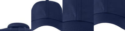 93/7 polyester/spandex Unstructured, 6-panel Nautica inside taping Back elastic white and navy cord Embossed J-Class logo on back hook and loop strap Embroidered signature J-Class logo on left side