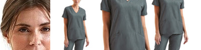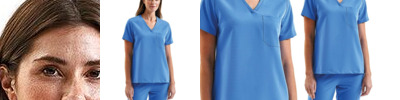 - V-neck style with left chest pocket and combined pen pocket