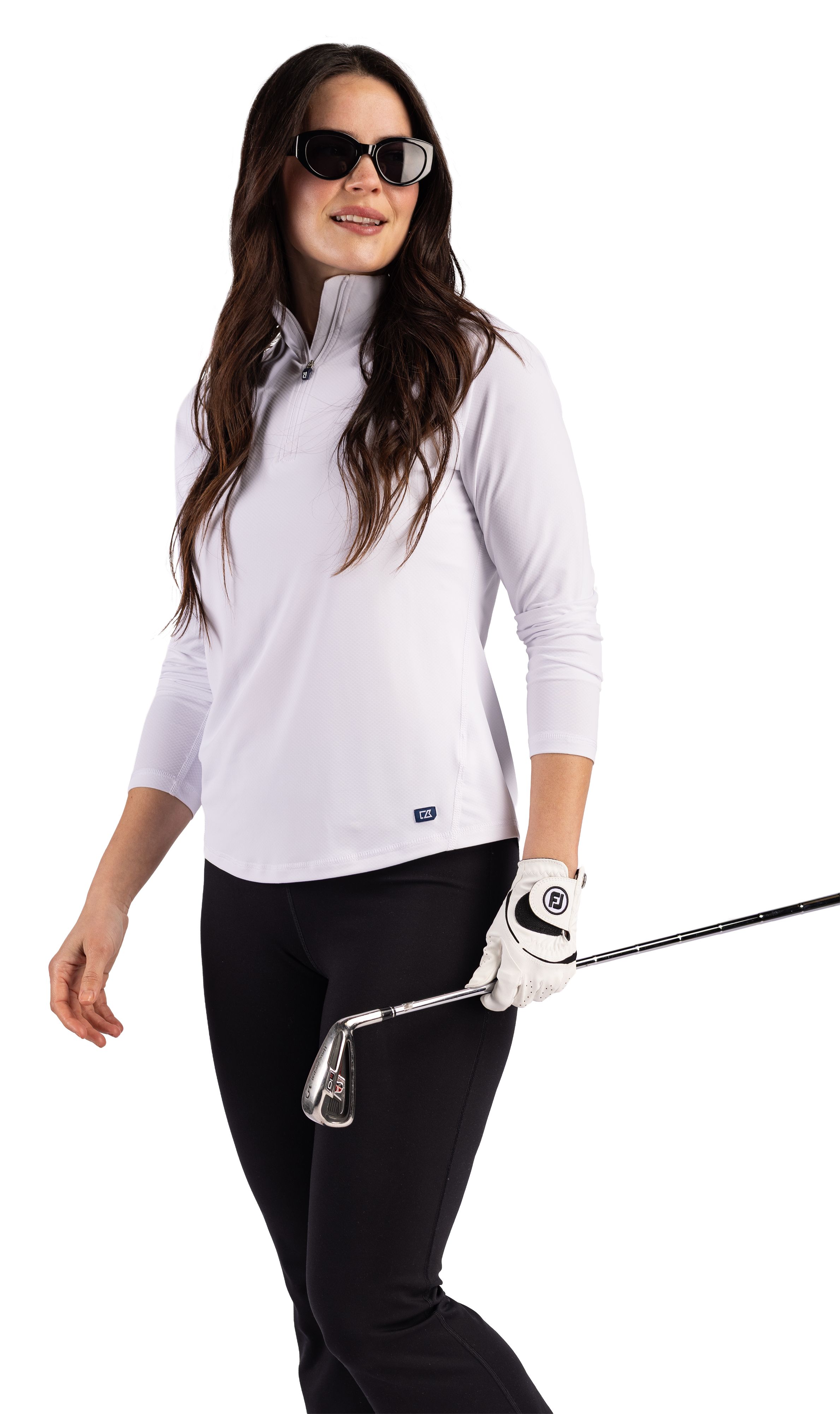 The airy, ultra-fine jacquard Cutter & Buck Prospect Recycled Featherlight Stretch Womens Quarter Zip is crafted for the innovators, the ever-ready, and those who push beyond. Part of the Epic Confidence Collection, designed with Cutter & Bucks Pacific Northwest heritage at its core, this lightweight layer blends elevated performance with a refined, modern lookempowering you to move through your day with assurance, from first meeting to last light. Crafted from a premium featherlight blend of 92% recycled polyester and 8% spandex, this womens quarter zip delivers lightweight stretch, moisture wicking comfort, and a polished feel that moves easily through the day. The GRS Certified post-consumer recycled polyester fabric features a refined jacquard texture for elevated style, while raglan sleeves enhance mobility and natural range of motion. A quarter zip mock neck provides adjustable coverage for changing conditions, and built in UPF 50+ UV protection offers added confidence during outdoor momentsmaking this a versatile, performance driven layer designed for work, travel, and everyday movement. - 92% Recycled Polyester, 8% Spandex Fine Gauge Jersey - Made from GRS certified post-consumer recycled polyester - Jacquard texture for elevated style - UPF 50+ UV Sun Protection - Moisture-wicking and breathable - Lightweight long sleeve quarter zip - Raglan sleeves for enhanced mobility - Soft, luxurious 4-way stretch for effortless movement - Machine Wash