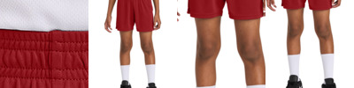 This versatile short offers moisture wicking, sun protection and side pockets. 3.8-ounce, 100% polyester interlock with PosiCharge technology Moisture-wicking UPF rating of 30 5-inch inseam Elastic waistband No drawcord Side pockets Tear-away label