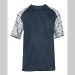 100% polyester wicking smooth knit * Odor resistant * Wicks moisture away from the body * Heat sealed label * Self-fabric collar * Topstitched shoulder seams * Set-in sleeves * Contrast color piping on shoulder * Contrast color insert at sleeve hem * Double-needle hemmed bottom