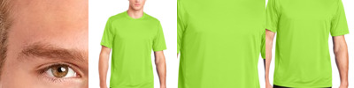 80% polyester/20% spandex • 5 oz. • moisture-wicking • odor- and stain-resistant • four-way stretch moisture management fabric • flatlock stitching on seams • Sizes: S-3XL